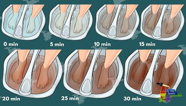 It is recommended to use warm water so your pores will open as well as salt which can act as an anti-inflammatory astringent. Ions are usually absorbed through the feet. If the salt water becomes dark, this is a sign that you are toxin-free.