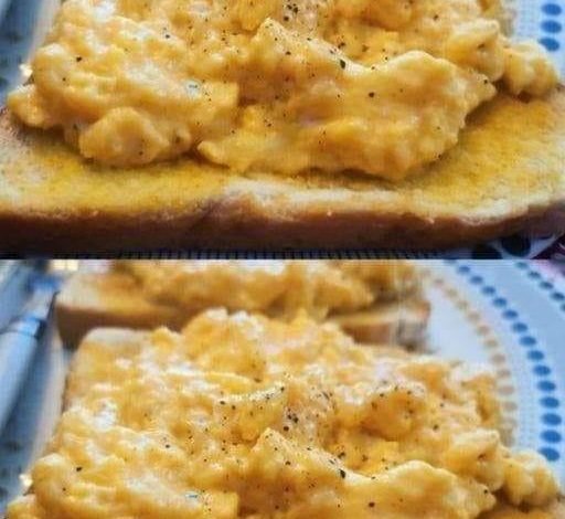 - When the eggs are almost done, remove the pan from the heat. The residual heat will finish cooking the eggs, giving you the softest and creamiest scrambled eggs.